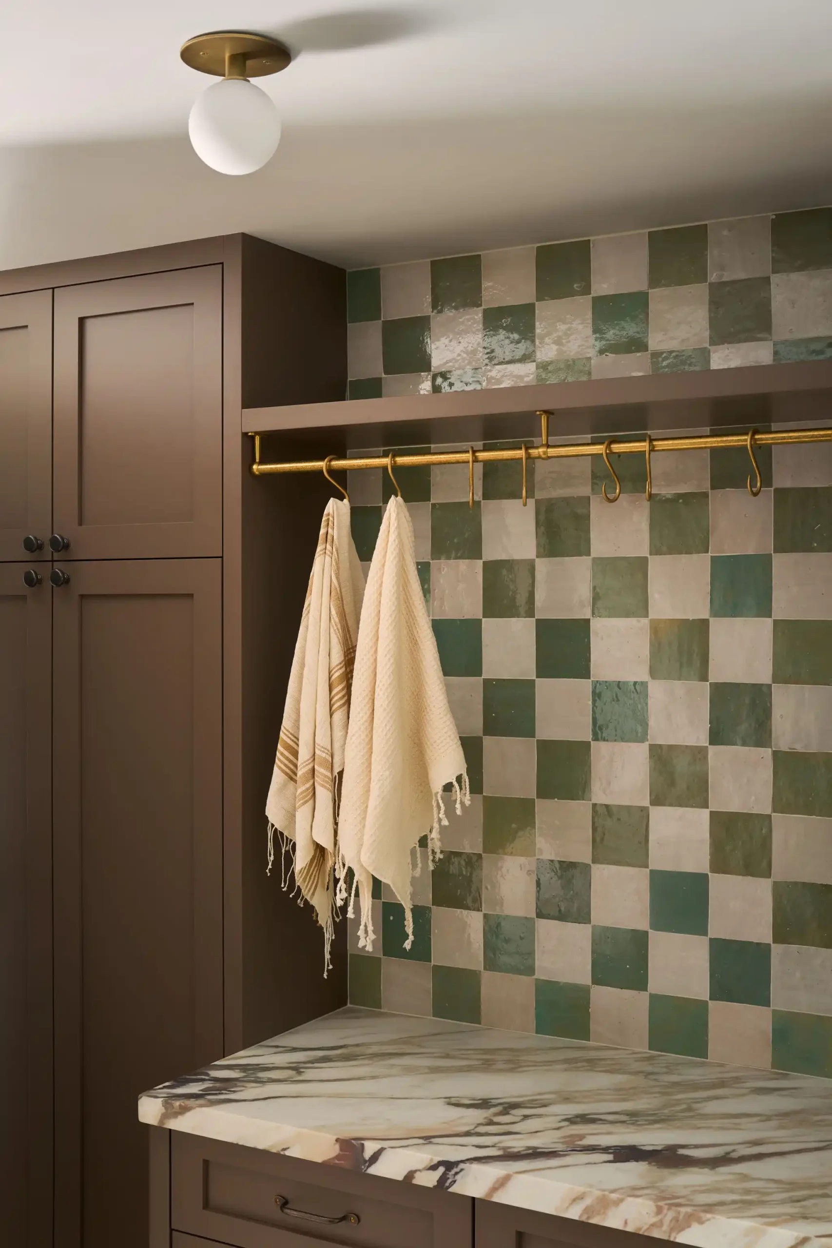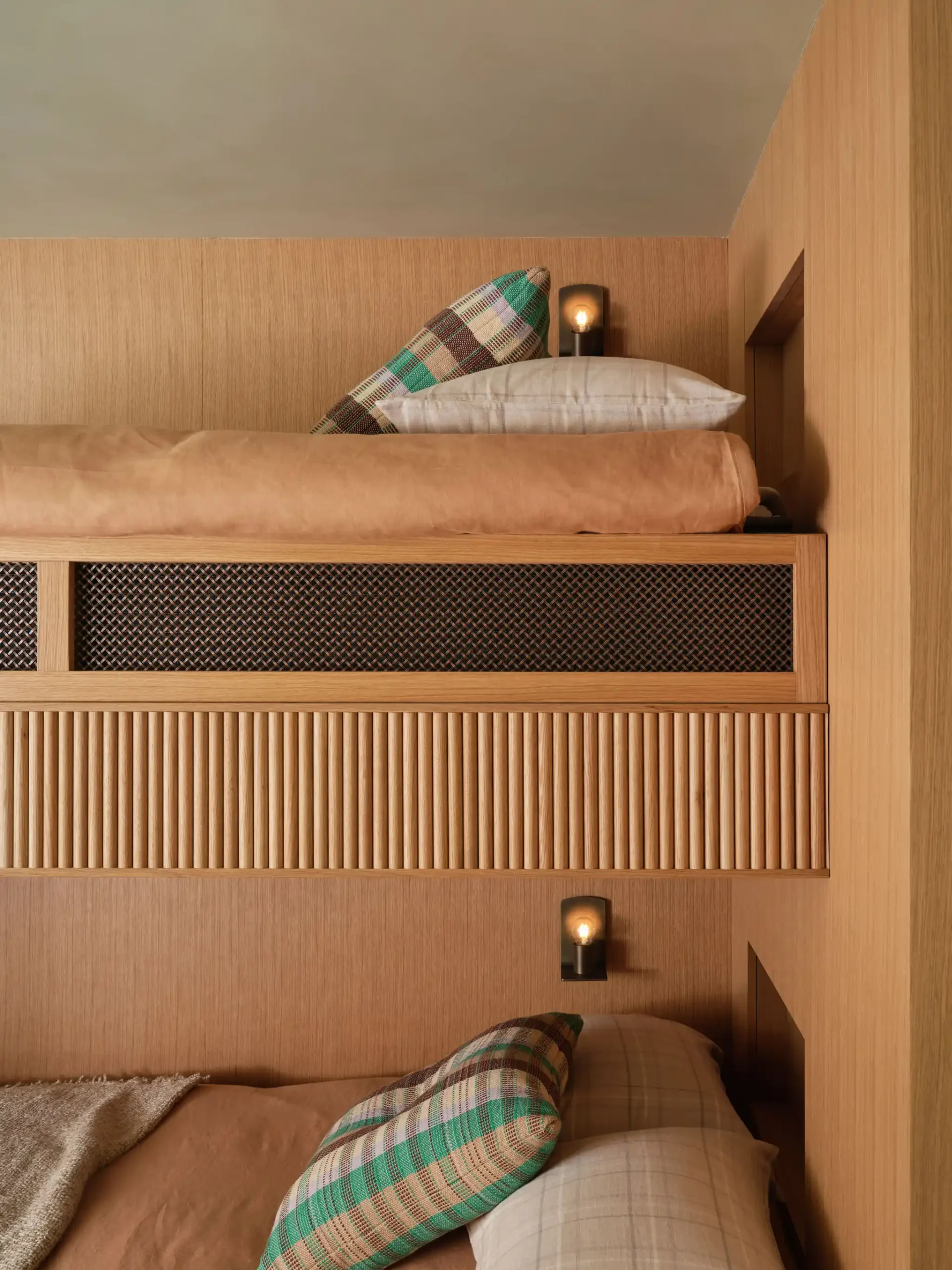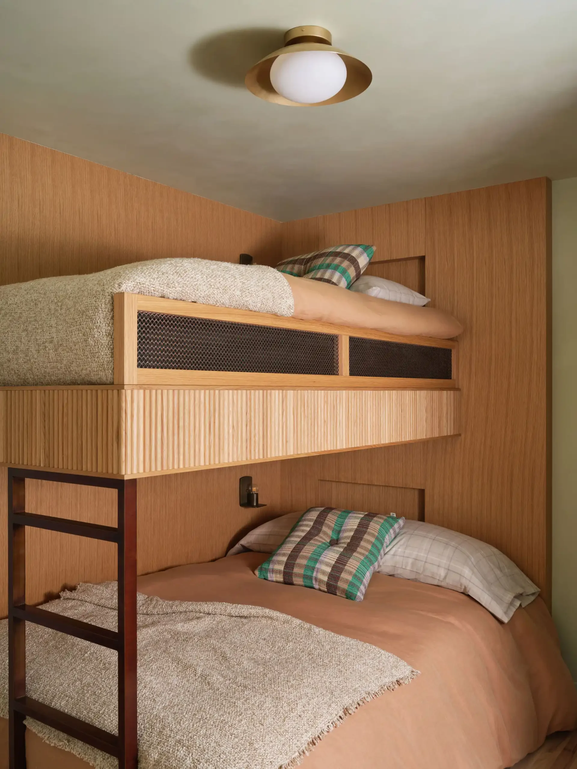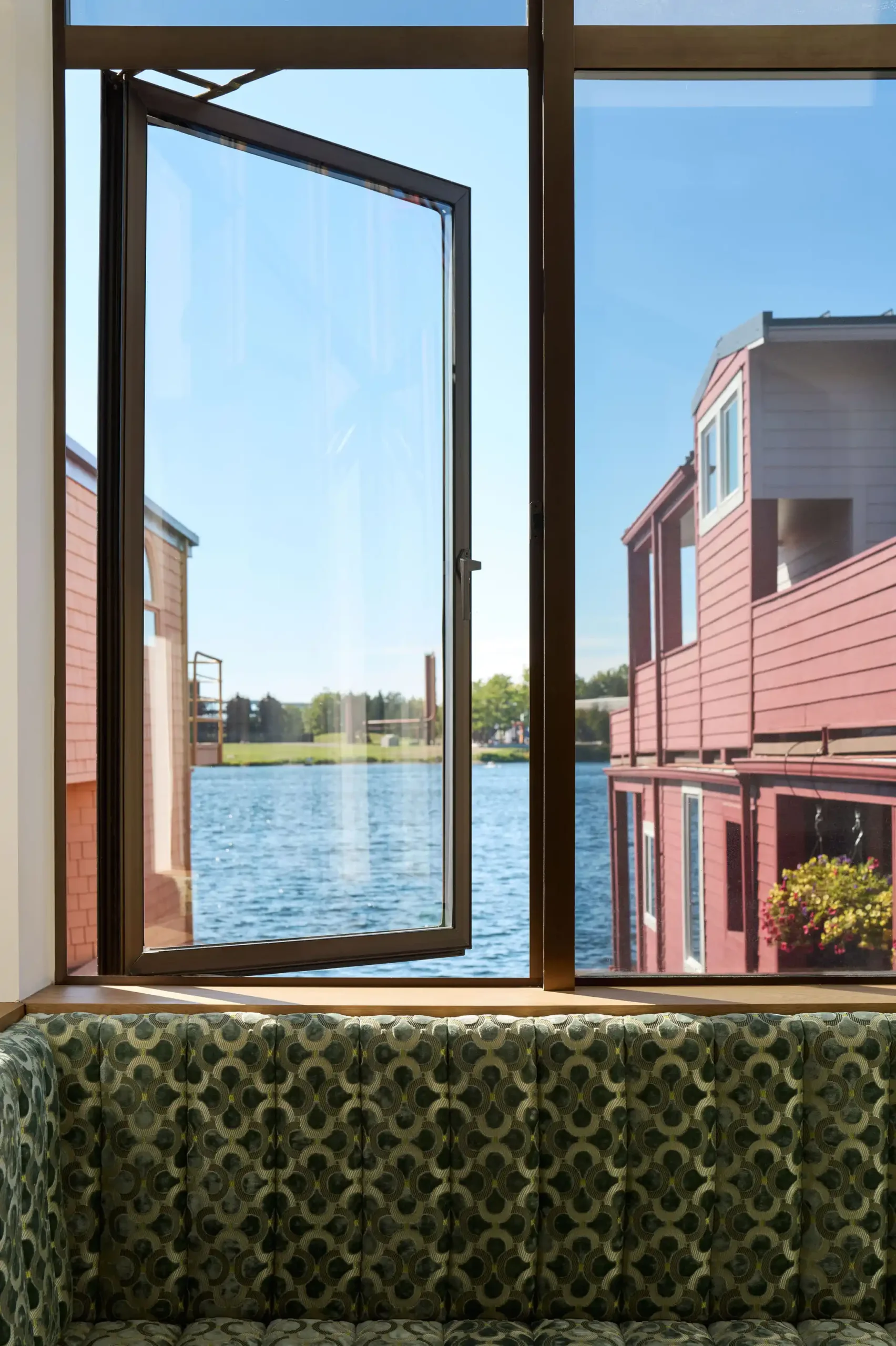 The space captures the spirit of its setting with warm white oak cladding wrapping the ceilings and walls. Playful color moments, painted cabinetry, and bold marble mingle with curated pieces from Nickey Kehoe, Lindsey Adelman, Urban Electric, Apparatus, and Stahl + Band. Artworks by Udo Nöger, Karen Gunderson, and Curtis Steiner add soul and sophistication. The result is a scandi-eclectic, lived-in haven—crafted for a company President & CEO who sought to embrace Seattle’s coastal energy after trading the desert Southwest for the Pacific Northwest.