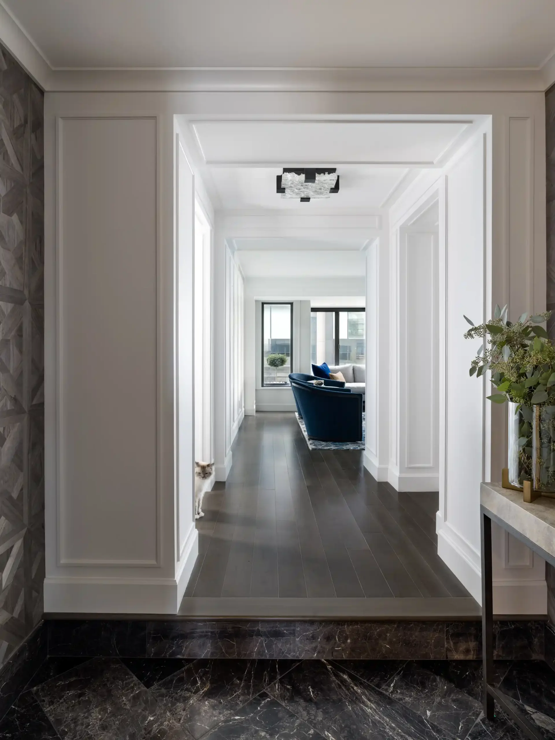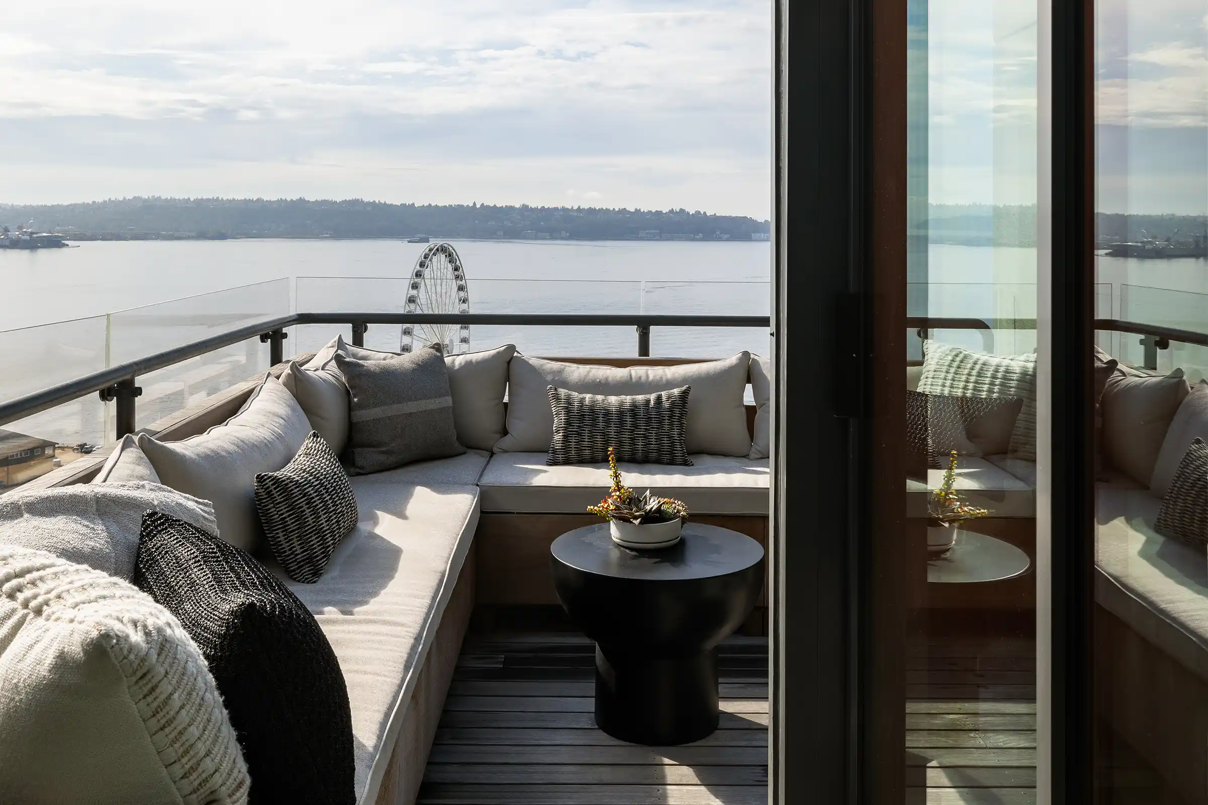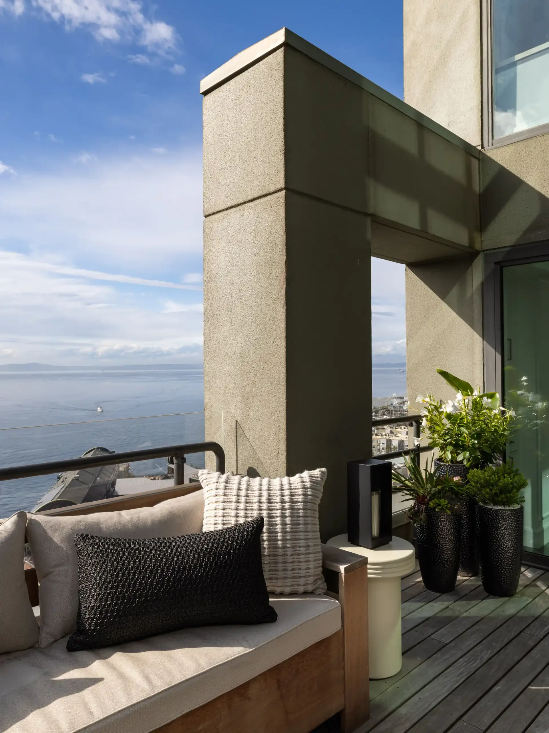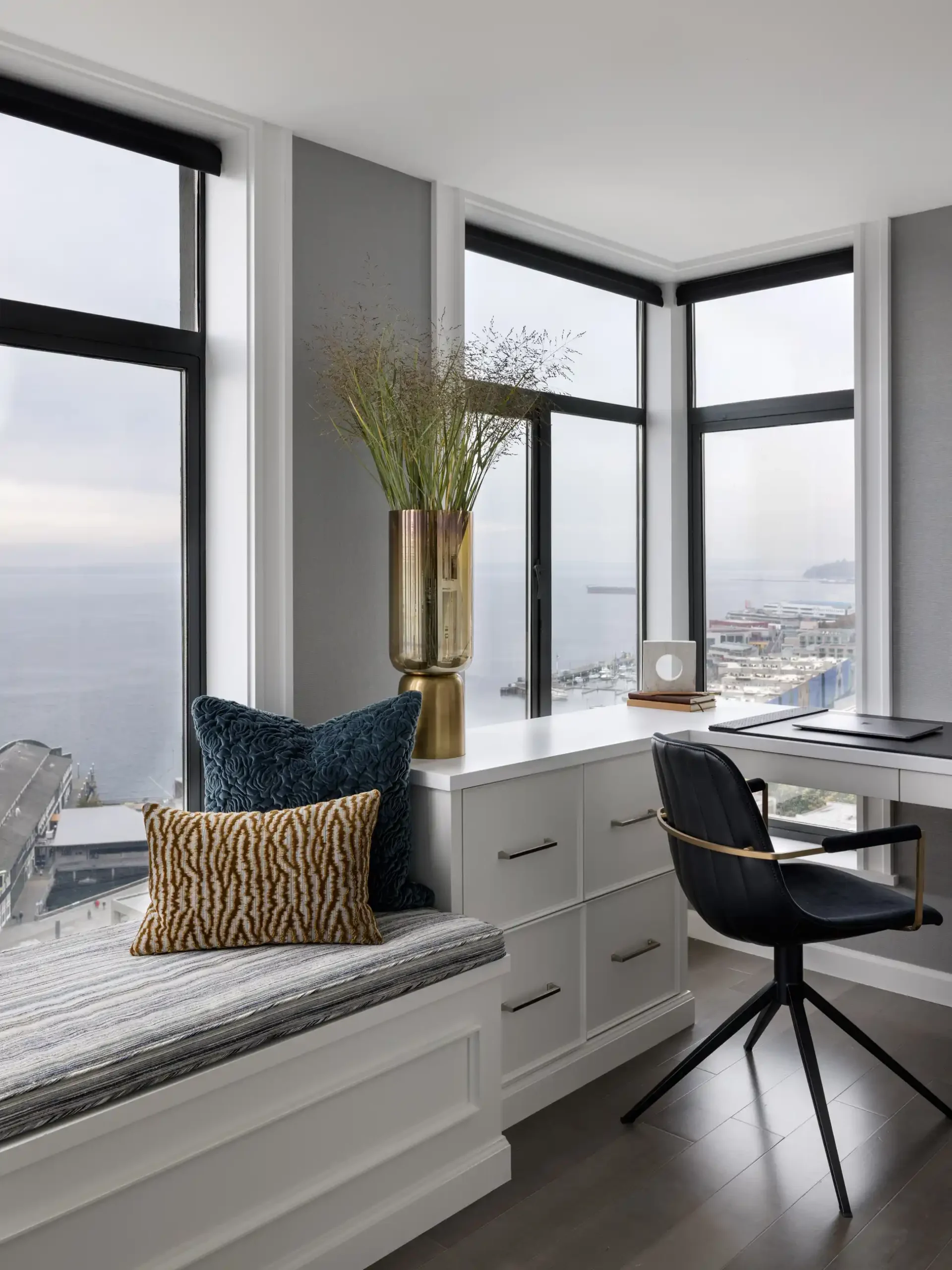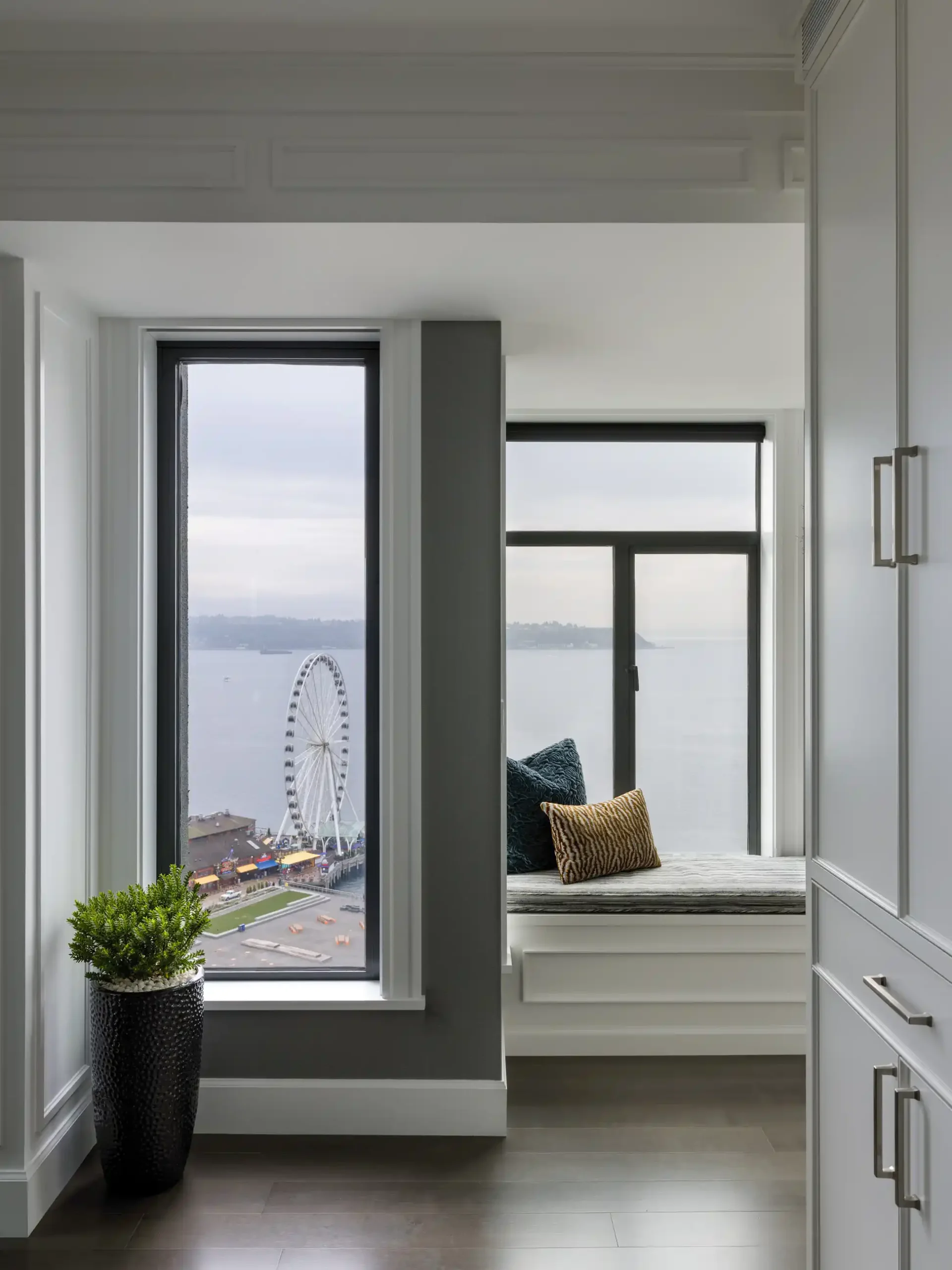 Perched atop the Seattle waterfront, this penthouse was reimagined as a refined next chapter for a couple transitioning from their family home. The entry was reconfigured to create a more intuitive arrival and a modern sense of flow, leading into a reorganized interior that captures sweeping views while clearly defining public and private spaces. A serene primary suite and office offer retreat, while a full guest suite ensures comfort and independence.