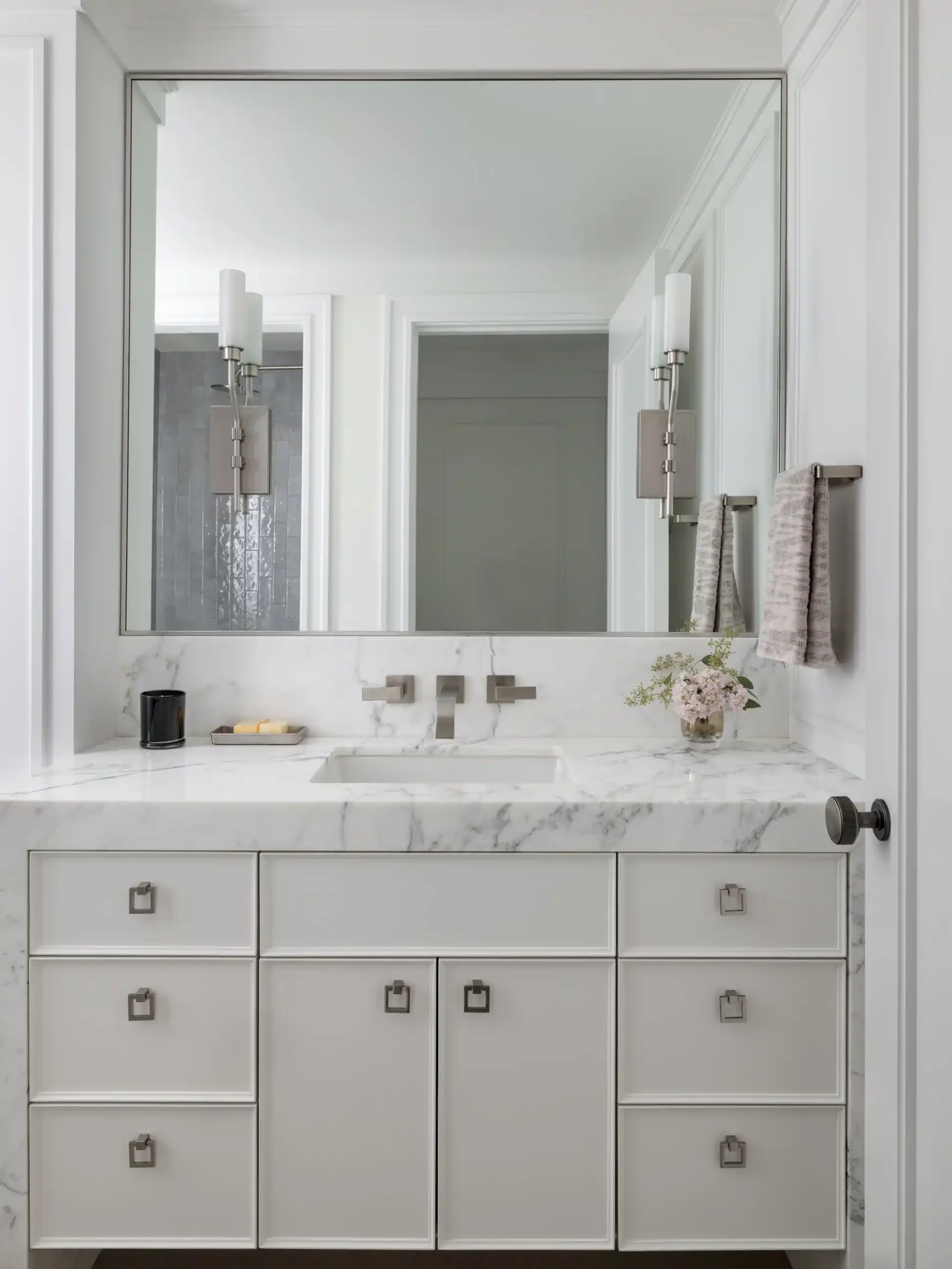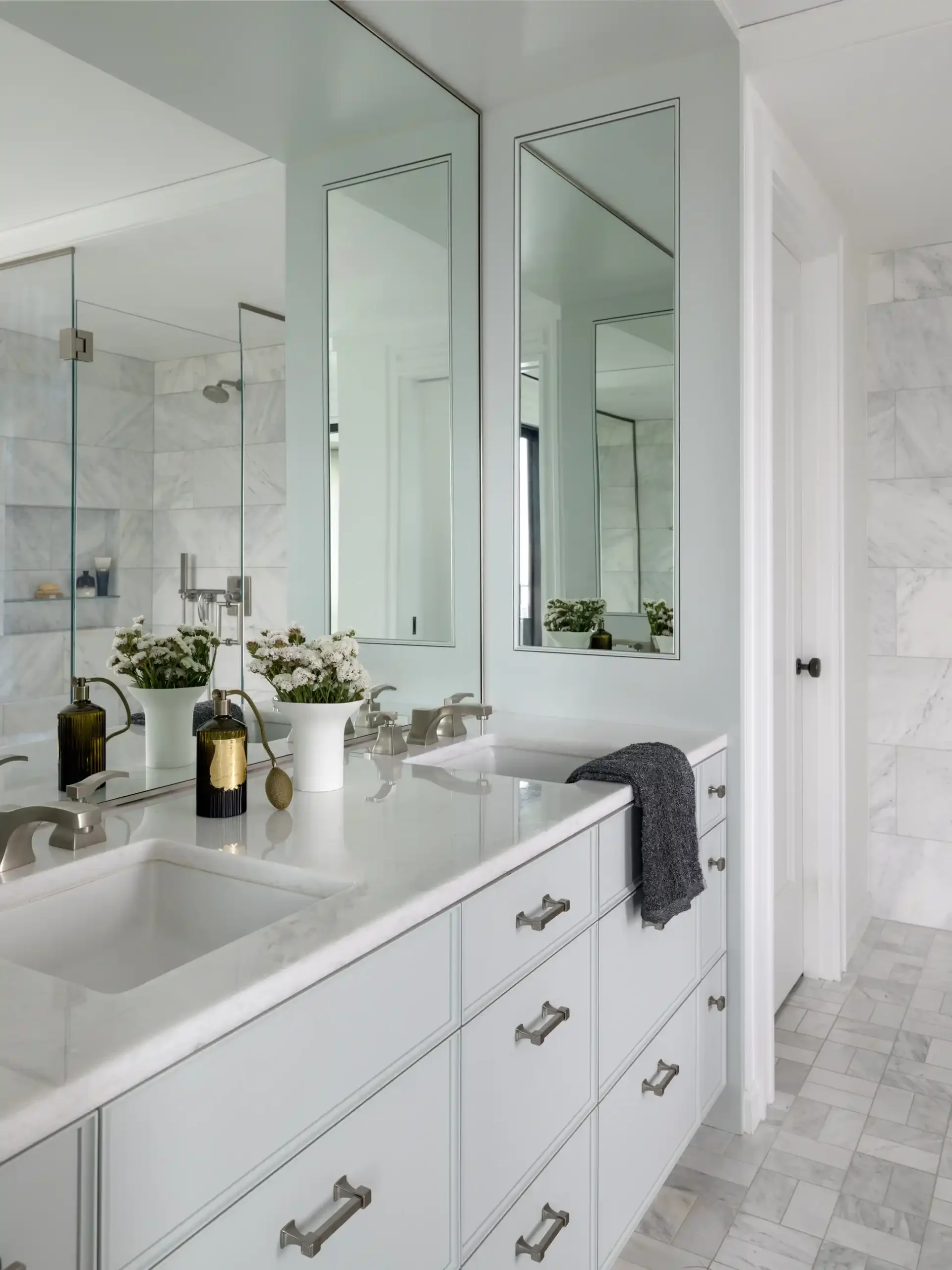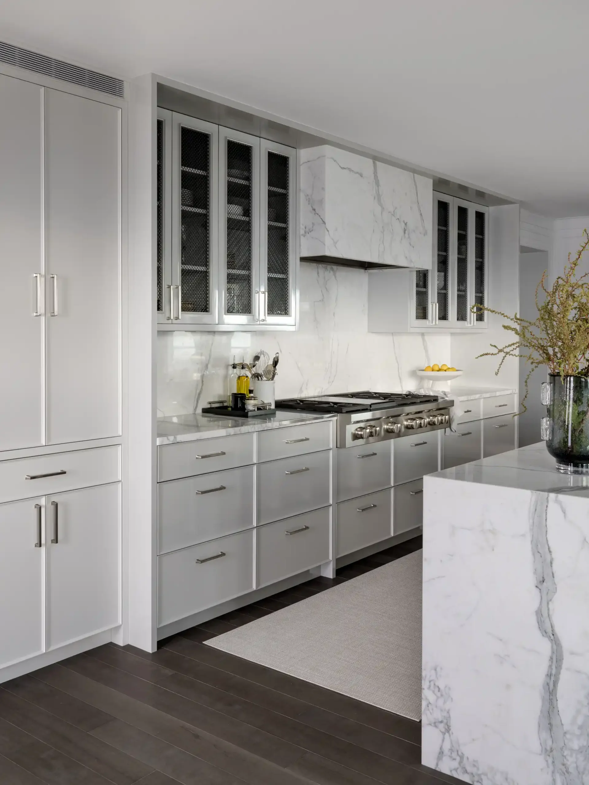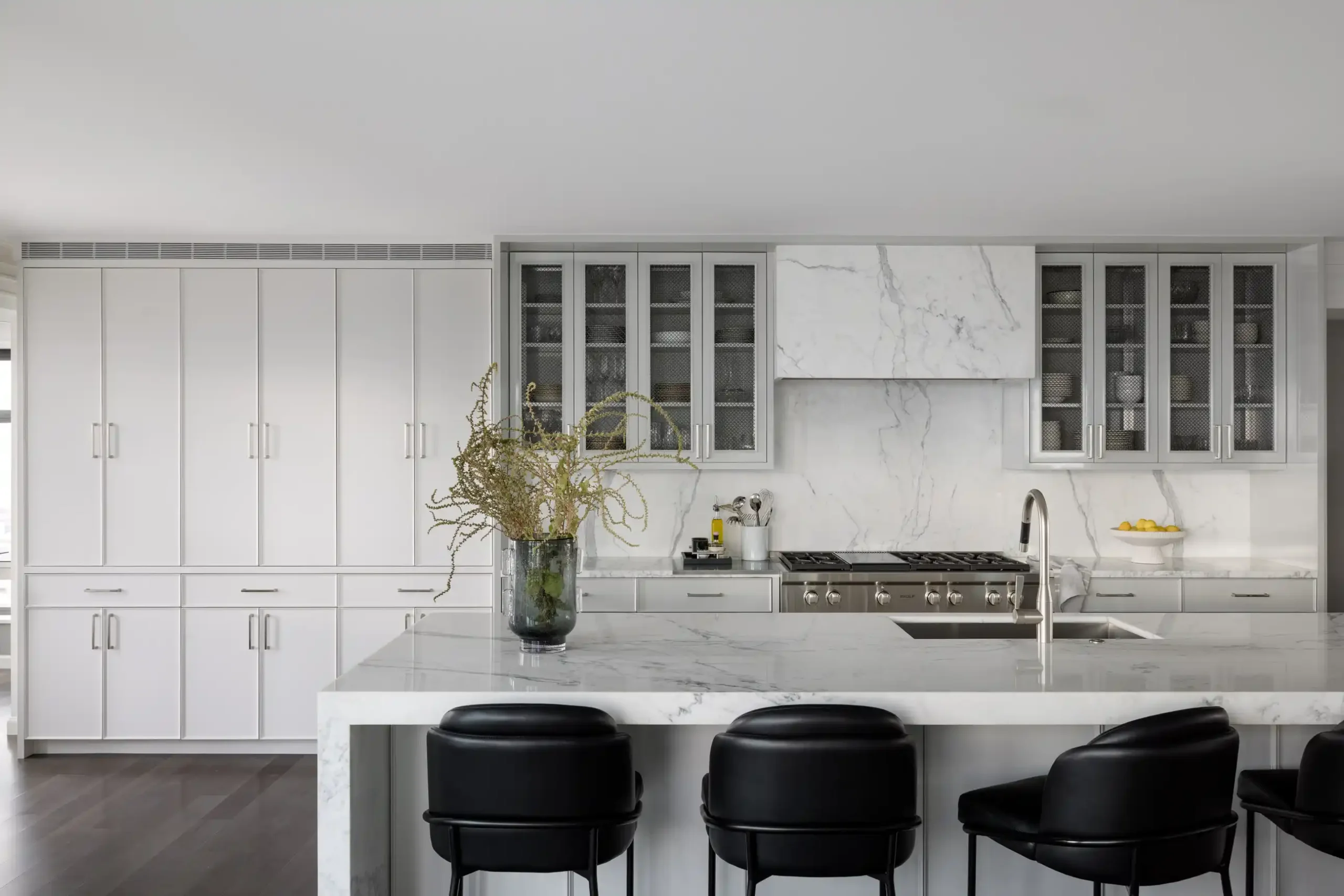 Upgraded systems, refreshed exterior openings, reimagined decks, and new finishes throughout strengthen the home’s connection to the revitalized waterfront and elevate long-term performance. An elegant palette of paneling, soft woods, marble, subtle metals, and layered textiles creates a modern sanctuary tailored to refined living and the couple’s evolving needs.